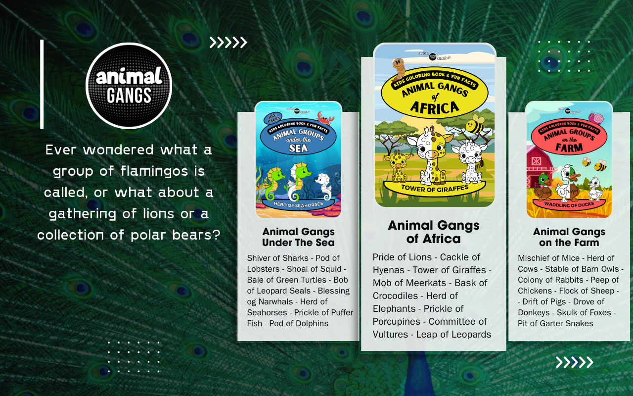 Our mission at Animal Gangs is to share the weird and wonderful animal group names to inspire imagination, foster creativity, and promote learning through a range of fun and engaging activities, stories, and products for kids and adults!